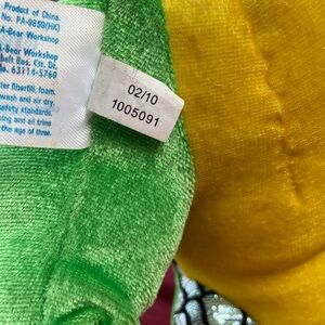 Adorable plush frog toy with vibrant green body and red feet. Perfect for cuddling or as a playful decor piece.