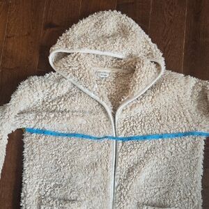 Kensie Hooded Sherpa Open Cardigan Coat Soft Cream Snuggly Jacket S/M Like New