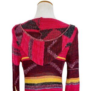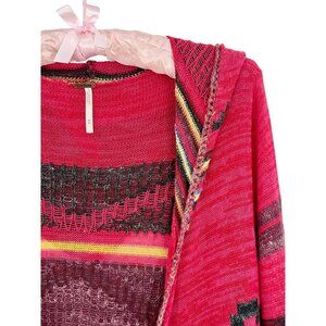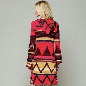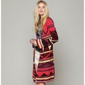 Free People Hooded Long Multicolored Aztec Boho Cozy Lightweight Cardigan