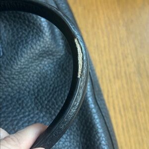Chic black satchel with textured finish. Features sturdy handles and elegant design. Ideal for daily use. Signs of wear shown in photos. Hasn’t been used in years