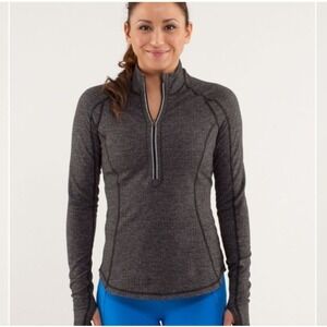 Lululemon Run U Turn Herringbone Pullover Sweater, size 2, 4 Gray 1/2 Zip