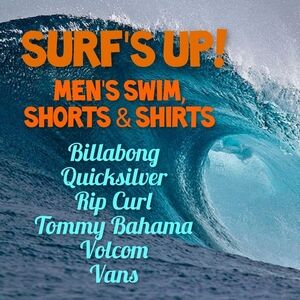 Check out my closet for a HUGE selection of great beachy brands like Hurley, Billabong, Quicksilver, Rip Curl, Volcom, VANS, Body Glove, Hollister, OP, O'Neill and more. Hundreds of 3/10.00 items too! Just bundle and I'll send you an amazing offer. 😁👍