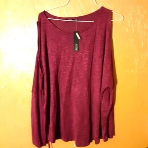 Stylish red quilted jacket. Features button closure and black trim. Perfect for cool weather.