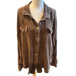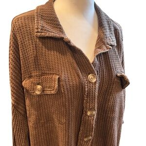 2/$30 Zenana Women’s Brown Waffle Texture Button Down Long Sleeve Shirt