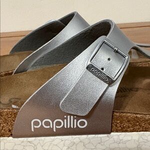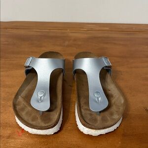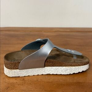 Birkenstock Papillio Gizeh Platform Stylish Silver Women's Sandals Size 8