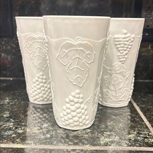 Vintage Inidiana milk glass. 6 inch cup Harvest Moon pattern. Set of three.