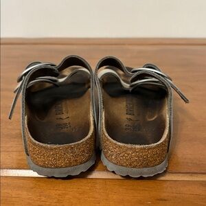 Stylish tan sandals with adjustable buckles. Classic Birkenstock comfort. Good condition