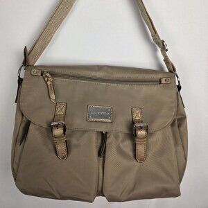 Dana Buchman Champagne Brown Messenger Bag with Metallic Pebbled Accents