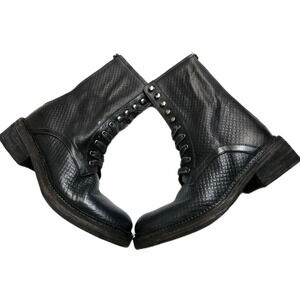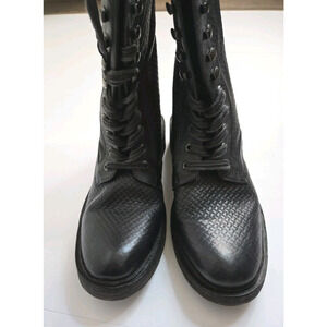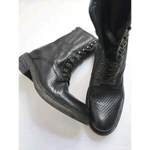 #freepeople #womens #black #leather #laceup #combat #embossed #santafe