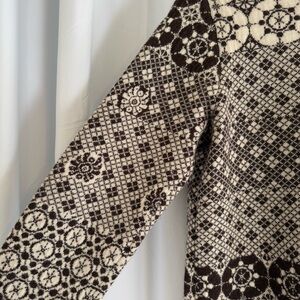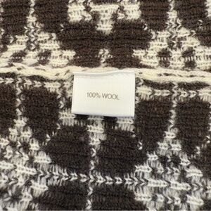 100% Wool Open Front Cardigan Brown Cream Geometric Scandi Pattern Medium