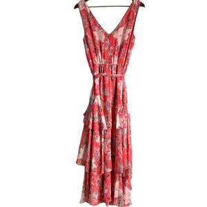 WHBM Pink Flirty Floral Print Midi Dress Sz 6