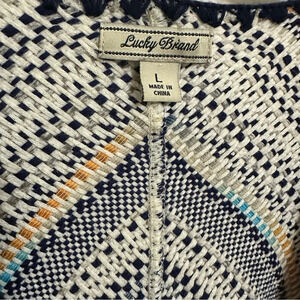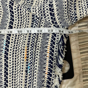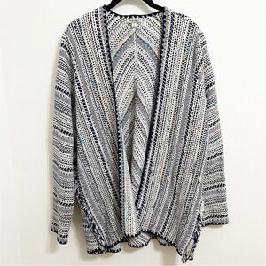 Woven Blanket Open Front Pottery Cardigan boho large cream blue cotton relaxed