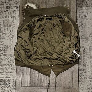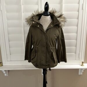 Zara Woman Faux Fur Hooded Parka Jacket Coat in green