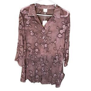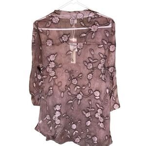Cupio blush plum semi sheer long sleeve blouse Size Medium appliqué 3D NWT