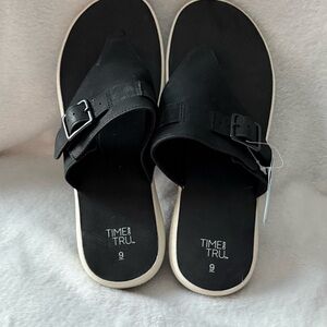 Time And Tru Women's Black Sandals with Buckle Size 9 Slip On Whimsigoth New