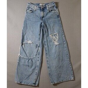 Levis 94 Baggy Wide-Leg Jeans Womens 25 27x29 Blue Denim Cotton Distressed