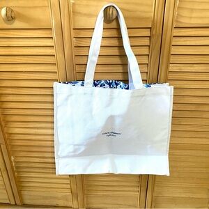 Stylish blue and white tote bag with intricate patterns. Perfect for overnight, the beach, laptop or books, or everyday use. Well made heavy canvas. Very good condition.