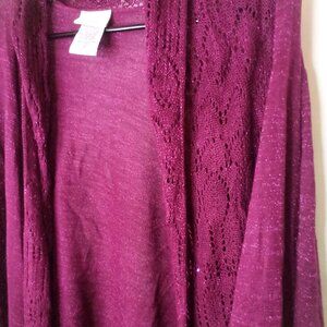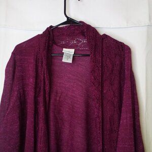 Jaclyn Smith Cardigan 3X Long Sleeve Open Front Lightweight Crochet Lace Purple