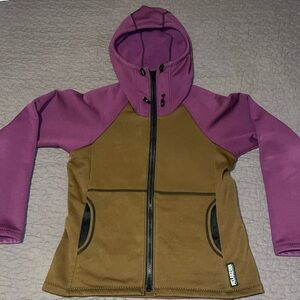 Cozy red fleece jacket. Half-zip front. Warm and stylish.