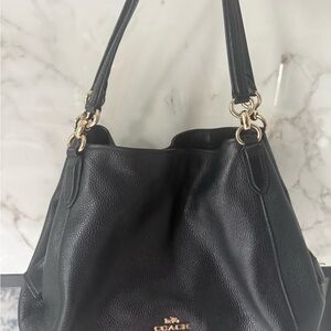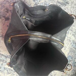 Sleek black leather with gold accents. Spacious interior. Ideal for daily use.