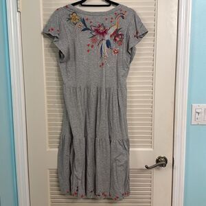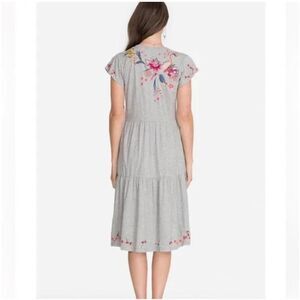 Johnny Was Jessica Tiered Embroidered Midi Dress Heathered Grey Size Small NWT