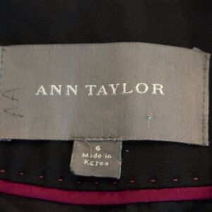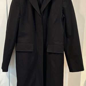 Ann Taylor Black rain trench coat button up pockets lined collared neck Size 6