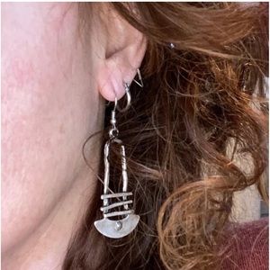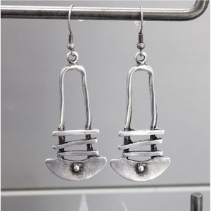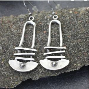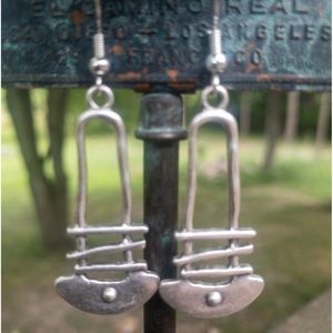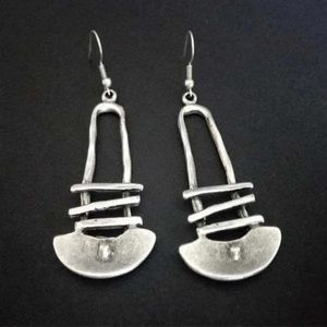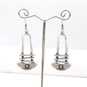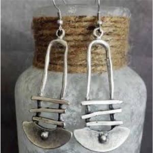 #New Native Tribal Handmade Sterling Silver Antique Style Geo Dangle Earrings