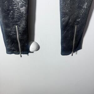 Abercrombie & Fitch floral print Pants in Women’s Small. Black with an allover embossed floral pattern. Mid-rise pull-on style with a stretchy, sleek finish. Perfect for night out, casual chic outfits, or elevated streetwear. Brand: Abercrombie & Fitch Size: Women’s Small Color: Black Material: Faux leather blend (poly/spandex) Style: Floral Embossed Pants Rise: Mid-Rise Leg Opening: Skinny Features: • Embossed floral faux leather texture • Stretchy and comfortable • Pull-on waistband • Slim, flattering silhouette • Great with sweaters, boots, heels, or a simple tank Good preowned condition. Light normal wear, but no peeling, no cracking, no stains, no tears.