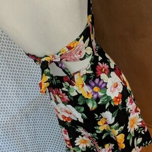 Amazing vintage floral halter top button-down dress in excellent condition '90s at its best tie back size 7/8 cute collared top