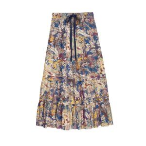 The Great Pastoral Tiered Maxi Skirt Womens 2 Small Blue Yellow Canopy Leaf