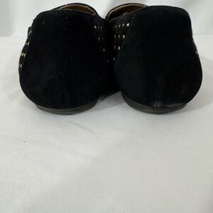 Elegant black flats with gold stud detailing. Comfortable and stylish for any occasion.