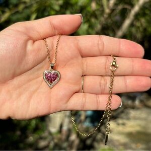 18K Gold Plated Stainless Steel Magenta Pink Diamond Heart Necklace