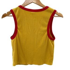 Pants have a elastic drawstring waist and are pull on style. They feature a racing stripe down the side, characters printed on the leg and are a wide leg cropped style. Please note there is a small mark near the waistband as can be seen in the photo.