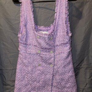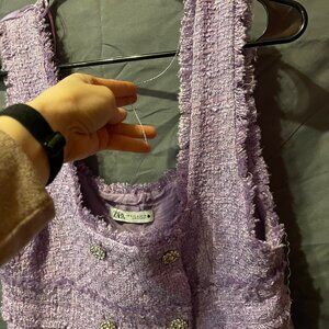 ZARA Lilac Rhinestone Button-Up Front, Sleeveless, Tweed, Mini Dress
