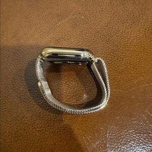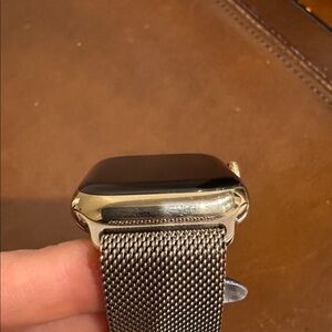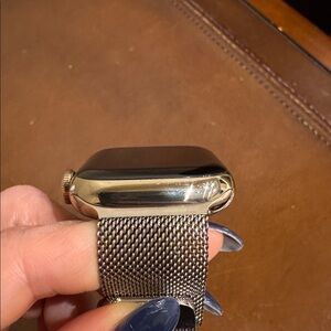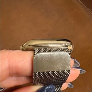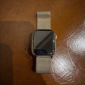 Apple Watch Series 8. Featuring a luxurious gold stainless steel case and a sleek Milanese Loop, this 41mm model offers both elegance and functionality. It supports GPS + Cellular, keeping you connected even without your iPhone nearby.