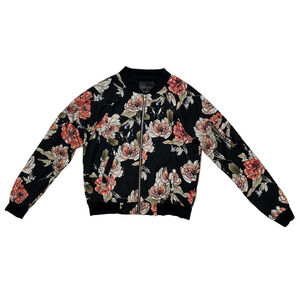 Sanctuary Anthropologie Floral Zip Front Bomber Jacket size Small