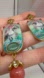 ONLY ONE PAIR IN STOCK. GOLD TONE METAL. POST BACK. NOT HEAVY. RHINESTONES AND ACRYLIC AND RESIN. PINK STONE AT THE BOTTOM. EARRINGS ARE 3''