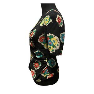 Black with red, blue and yellow floral print