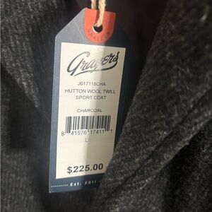 Grayers Hutton Wool Twill Sport Coat - Charcoal Gray Blazer size L NWT