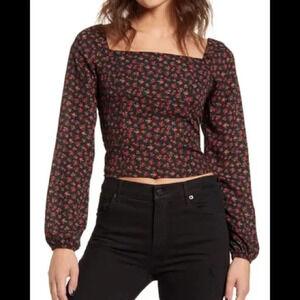 One Clothing Ditsy Long Sleeve Smocked Crop Top