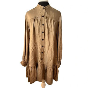 Banana Republic Holiday 2021 Utility Flo Rayon Khaki Twill Dress Balloon Sleeves