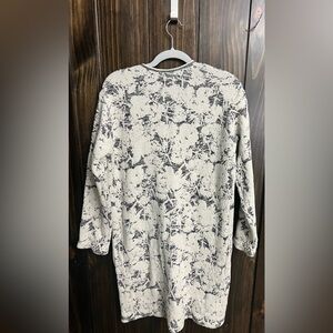 J. JILL White Gray Long Sleeve Jacquard Topper Longline Coat Jacket Size:Small