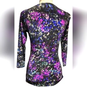 Like new Vince Camuto Wrap Blouse Beautiful wrap blouse Side ruching Colors: purple, fushsia/bright purple, black, gray, and teal 95% polyester, 5% spandex Pit to Pit - 15" Length - 25" All measurements are approximate and taken with garments laid flat. No stains, rips or flaws noted. Color in photos may slightly differ from actual item due to lighting and/or screen setting T-184