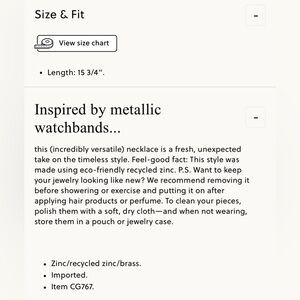 We recommend removing it before showering or exercise and putting it on after applying hair products or perfume. To clean your pieces, polish them with a soft, dry cloth-and when not wearing, store them in a pouch or jewelry case.