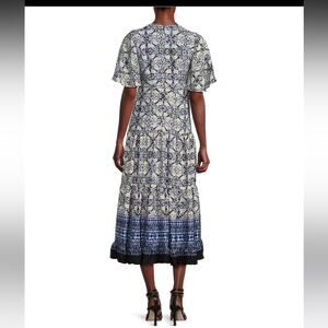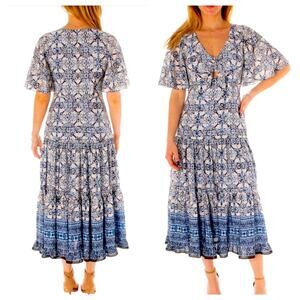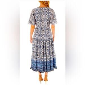 NEW Taylor Blue Floral Cut Out Midi Dress Short Flutter Sleeve Size 6 MSRP $138