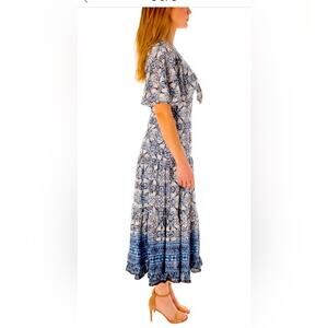 NWT Taylor Blue Floral midi dress. A-Line. Lined. Cutout with tie. Short flutter sleeve. V-Neck. Perfect wedding guest dress. Retail $138 More sizes available