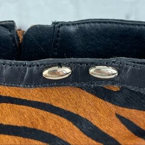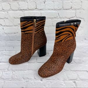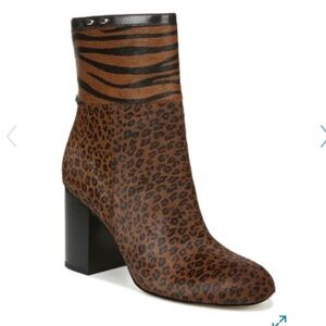 New without box SARTO BY FRANCO SARTO Genuine Animal Calf Hair Block Heel Ankle Boot. A pair of oval studs highlights the topline of a sleek bootie with a rounded toe and chunky, stacked heel. True to size. - 3 1/4" heel - 5 1/4" shaft - Side zip closure - Genuine calf-hair (Vietnam) upper/leather lining/synthetic sole - Imported - Women's Shoes