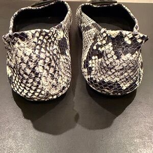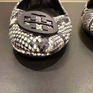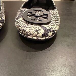 Chic loafers with a bold pattern. Features iconic Tory Burch emblem. Shoes are in excellent condition.