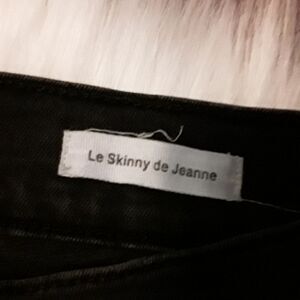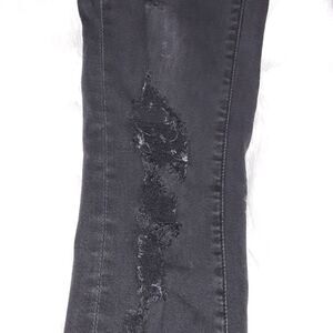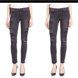 Factory distressed, destroyed, and faded black jeans, size 25. Le Skinny de Jeanne, Knight Ryder shred wash is a faded black style; in great pre loved condition.