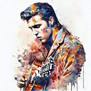 Elvis Presley Playing Guitar Watercolor Oil Painting Print King of Rock n' Roll Nostalgia Vintage Art